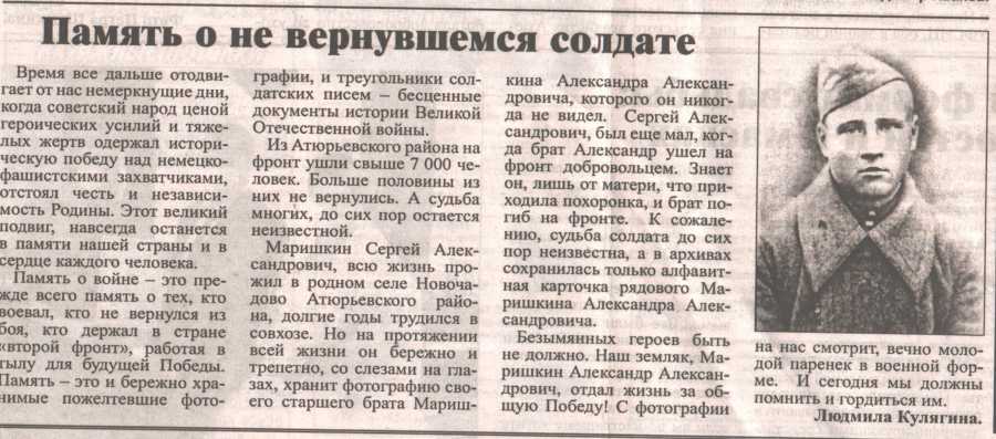 03.07.2020. Газета «Сельские вести»: «Память о не вернувшемся солдате»