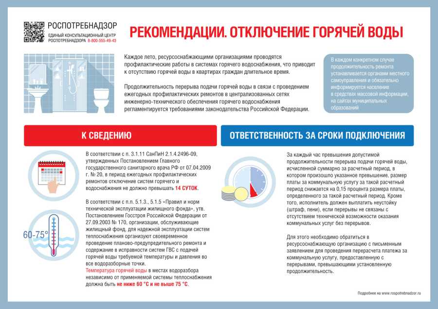 Каждое лето, ресурсоснабжающими организациями проводятся профилактические работы в системах горячего водоснабжения, что приводит к отсутствию горячей воды в квартирах граждан длительное время.
