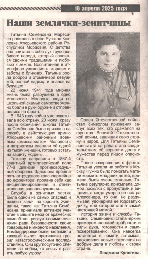 18.04.2025. Газета «Сельские вести»: «Наши землячки – зенитчицы!»
