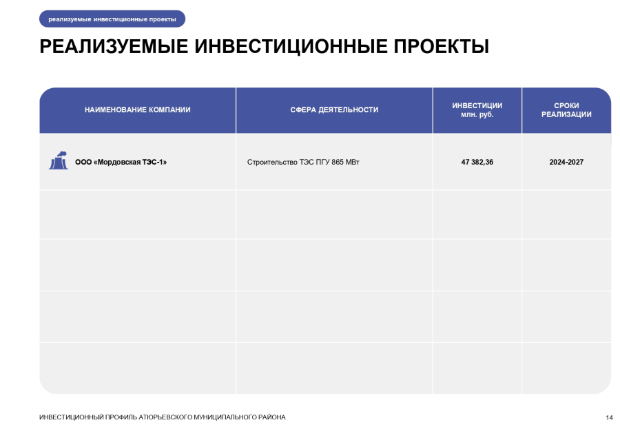 ИНВЕСТИЦИОННЫЙ ПРОФИЛЬ АТЮРЬЕВСКОГО МУНИЦИПАЛЬНОГО РАЙОНА