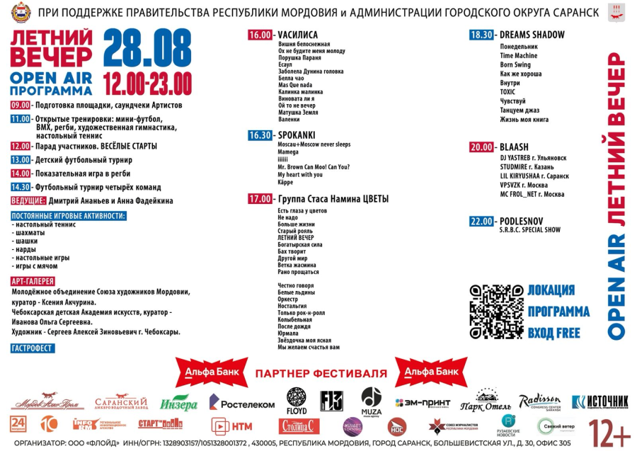 Друзья, приглашаем всех на Фестиваль ЛЕТНИЙ ВЕЧЕР, который состоится в г. Саранске 28 августа 2025 года!
