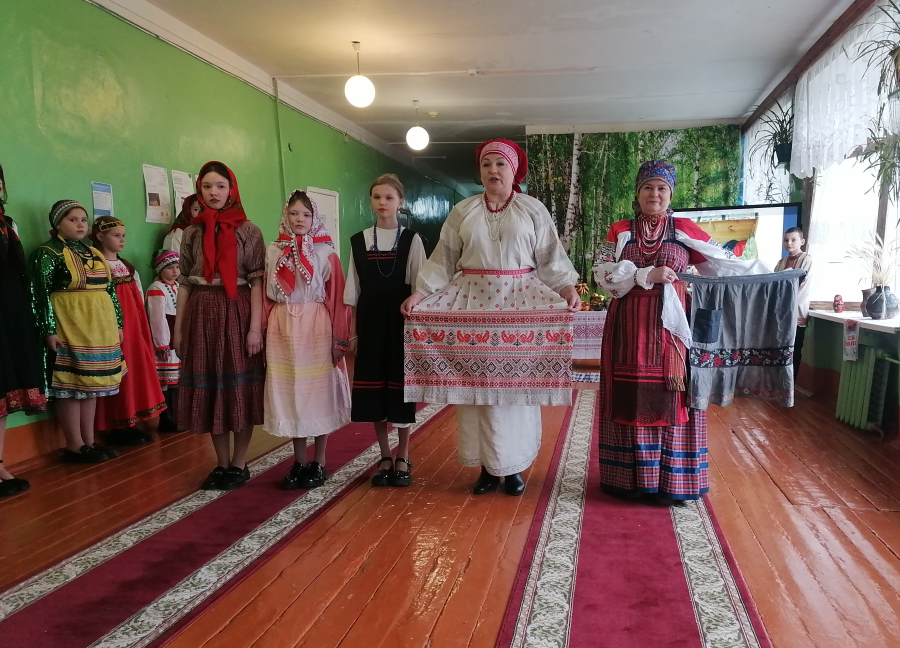 После экскурсии состоялось театрализованное представление, в ходе которого ребята показали сценки о традиционной русской одежде, её красоте и особенностях. Все присутствующие погрузились в атмосферу прошлых времен, окунулись в мир старинных вещей, предметов быта наших предков и услышали захватывающие рассказы об их значимости и происхождении.